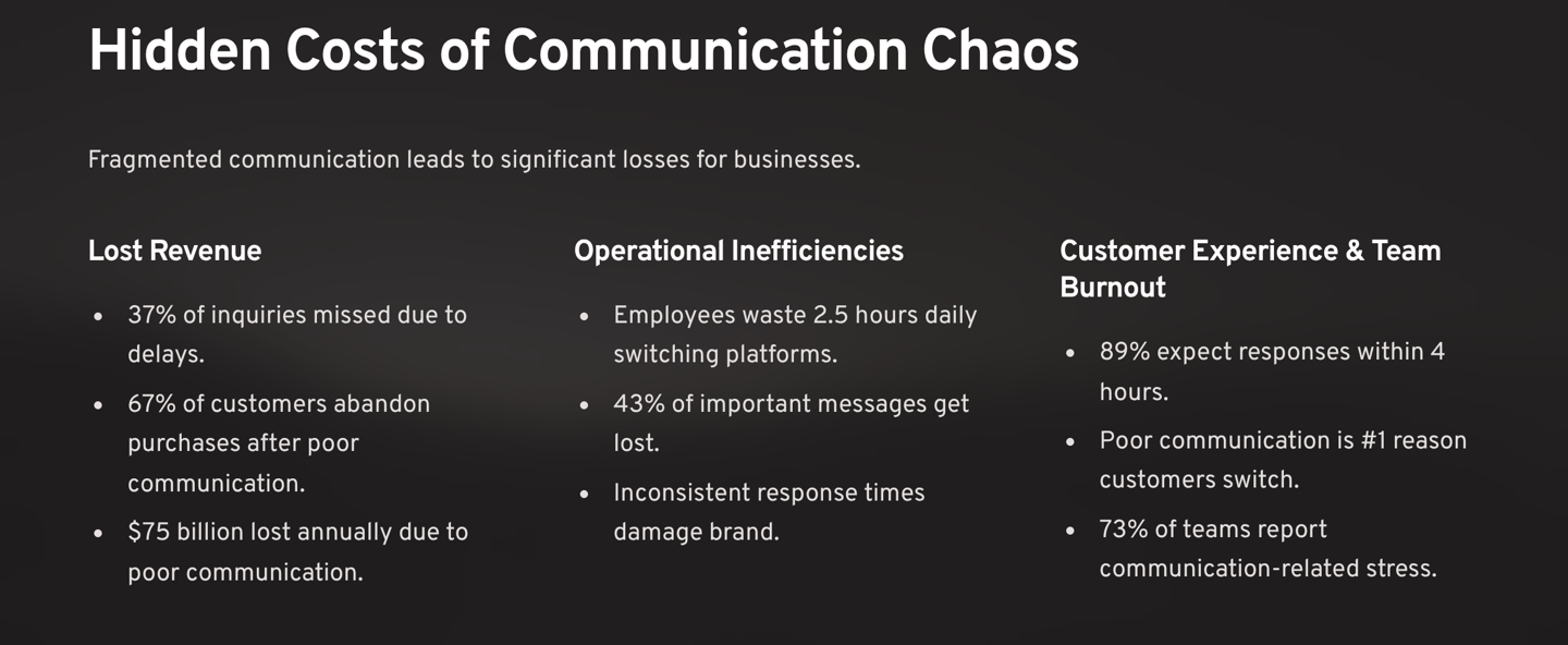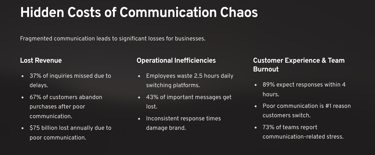 Before we dive into solutions, let's talk about what fragmented communication is actually costing your business. I've audited hundreds of businesses, and the numbers are consistently shocking.