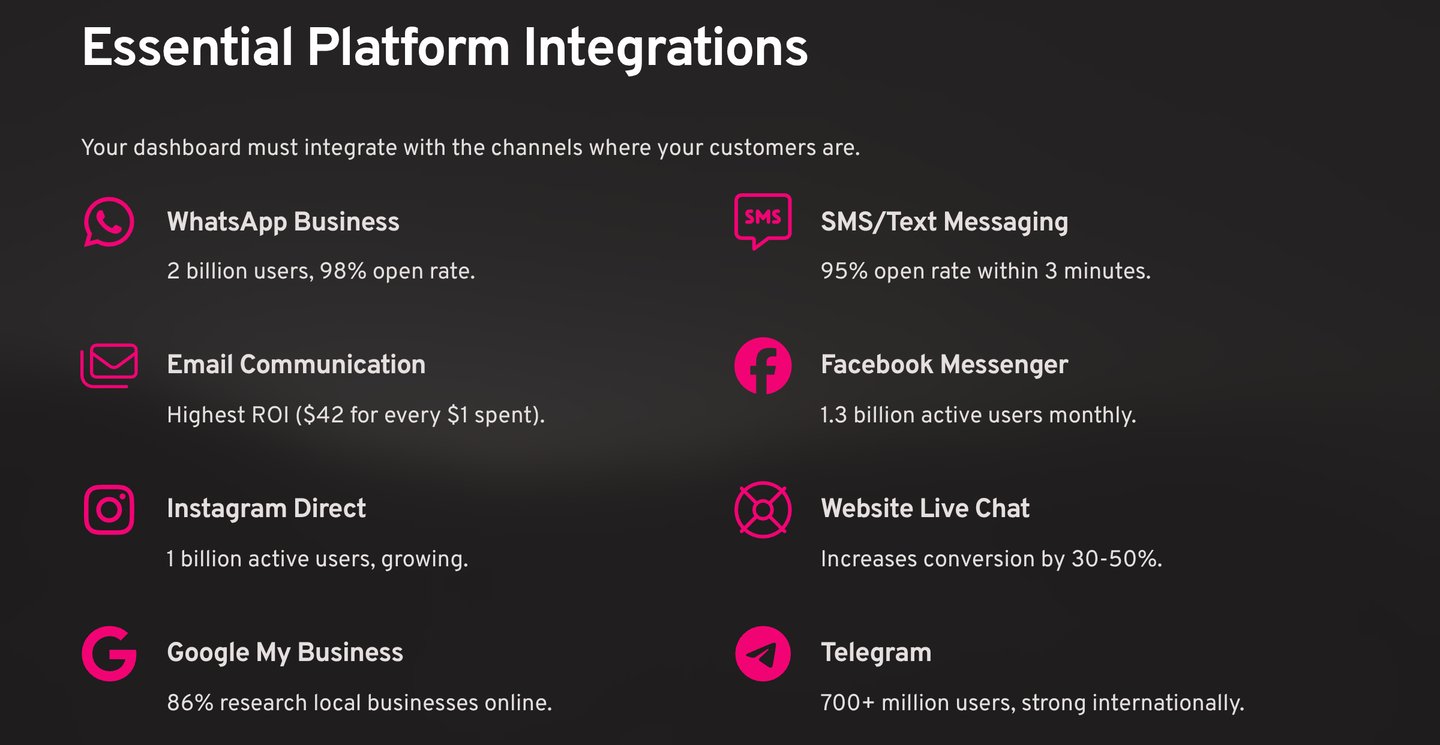 Not all platforms are created equal, and your dashboard needs to handle the channels where your customers actually are. Based on comprehensive analysis of customer behavior patterns across different industries and regions, here are the essential platforms: