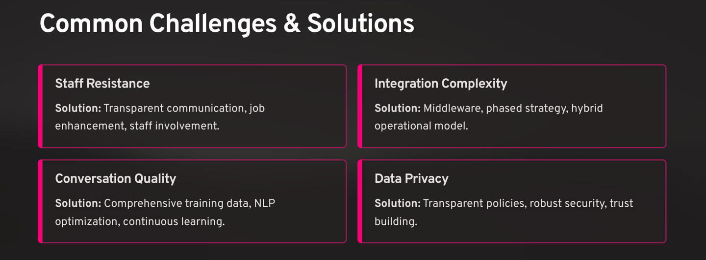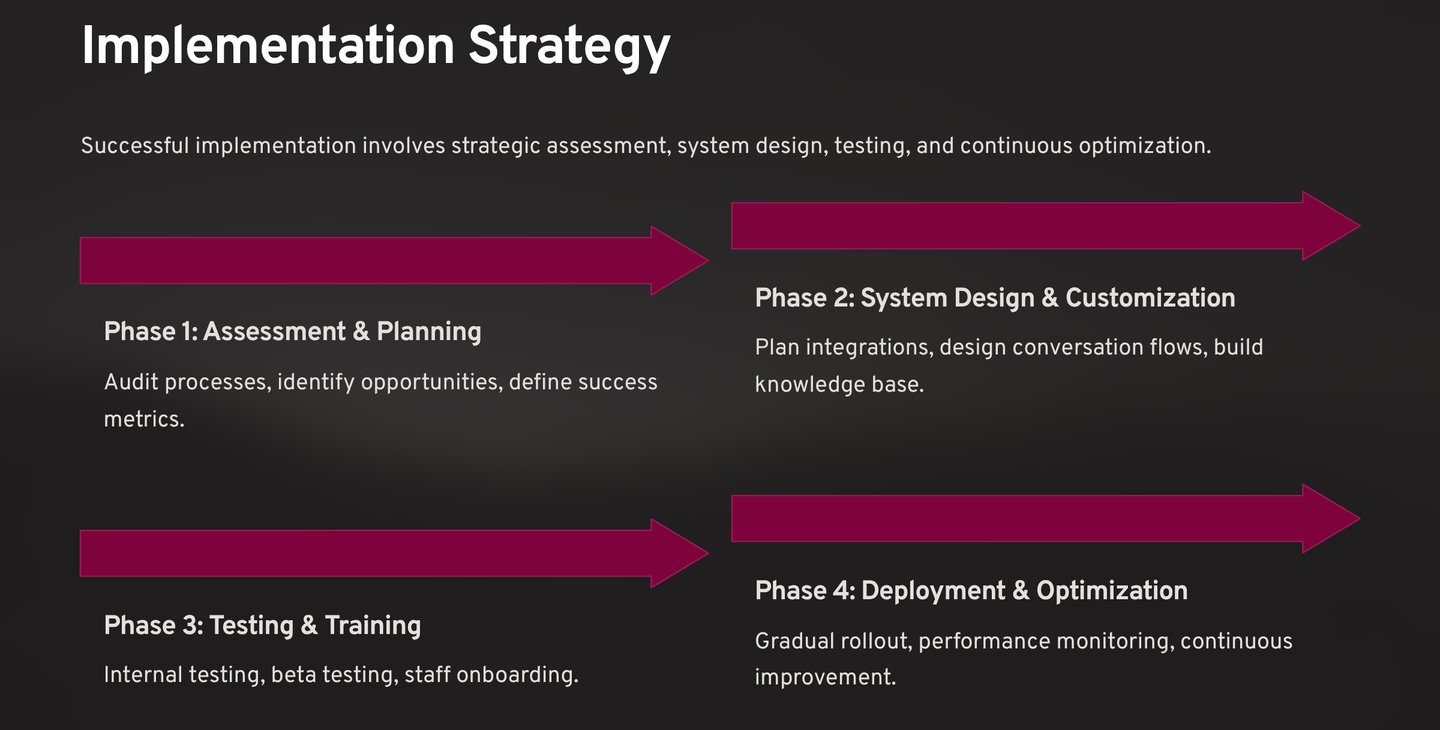 Real-World Example: A home services company reduced customer service calls by 70% while improving customer satisfaction scores by implementing an AI support bot that handled appointment scheduling, service inquiries, and billing questions.