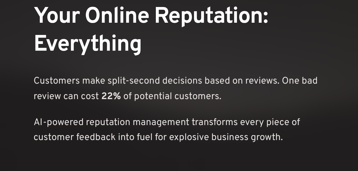 Your customers make the same split-second decisions about your business every single day. In today's hyper-connected world, your online reputation isn't just important—it's everything. One bad review can cost you 22% of potential customers. But here's the game-changer: AI-powered reputation management systems don't just protect your reputation—they turn every piece of customer feedback into fuel for explosive business growth.