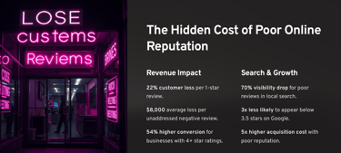 70% visibility drop: Businesses with poor reviews lose 70% of local search visibility
