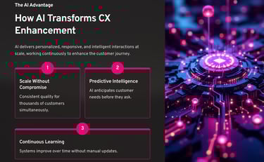 Artificial Intelligence has revolutionized customer experience enhancement by making it possible to deliver personalized, responsive, and intelligent interactions at scale. Unlike traditional customer service approaches that rely heavily on human resources and business hours, AI-powered solutions work continuously to enhance every aspect of the customer journey.