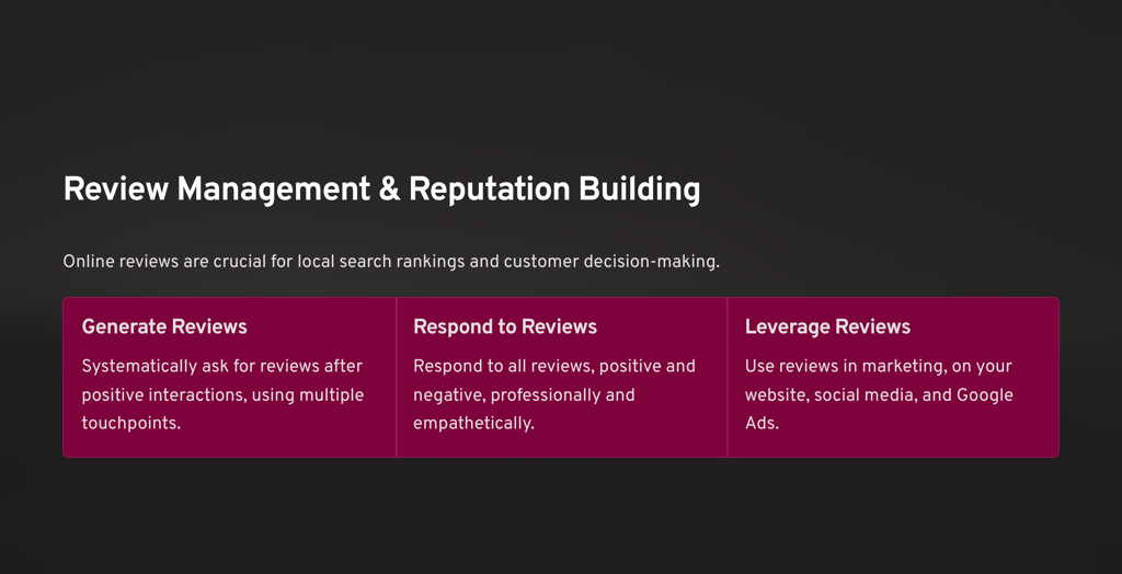 Poor Review Management Not actively collecting reviews or responding to existing ones.