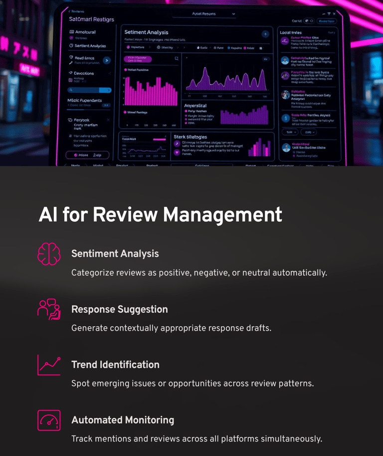 2025 and Beyond: The AI-Enhanced Era We're now entering an era where artificial intelligence helps businesses manage, respond to, and leverage reviews at scale while maintaining authentic, personalized interactions. Smart businesses are using AI to identify review trends, automate responses, and proactively address customer concerns.